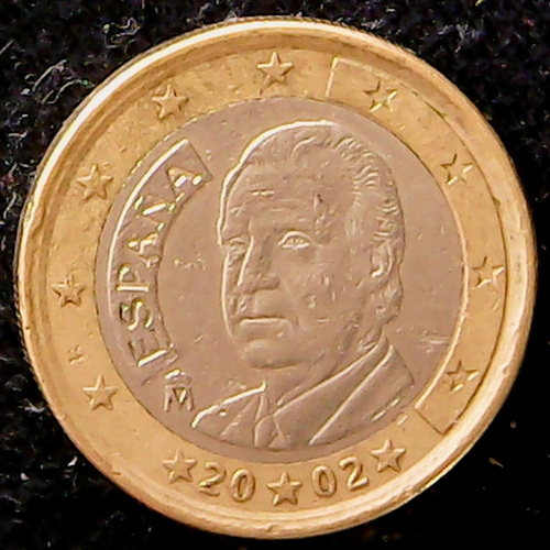 MONEDA DE UN EURO 2002 DE JUAN CARLOS I. CON ERROR DE ACUÑACION EN EL REVERSO