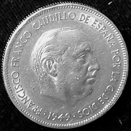 5 pesetas de 1949. Franco 1949 *19-50, Cy17840, con punto de ajuste de acuñación en busto.