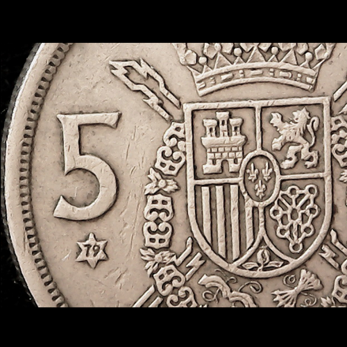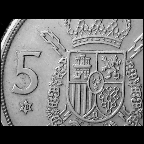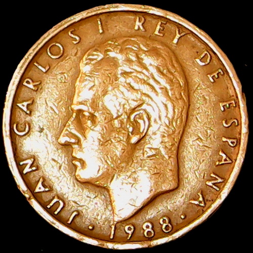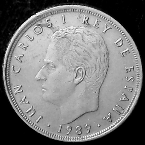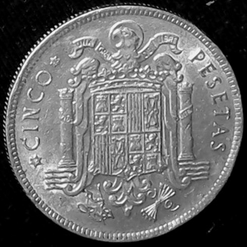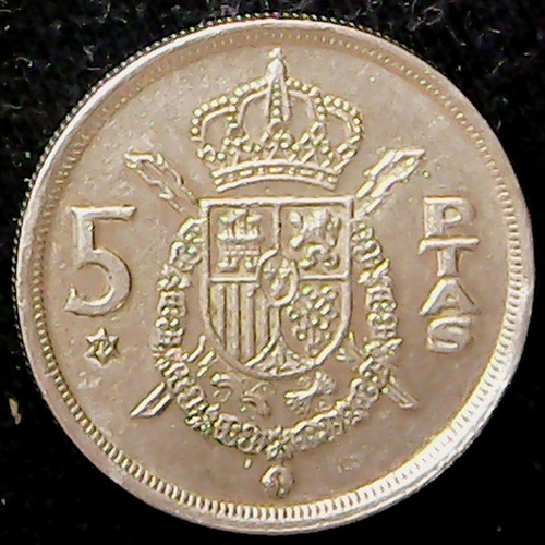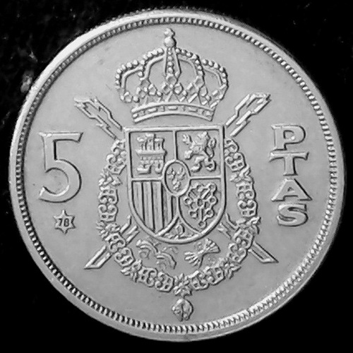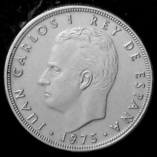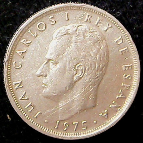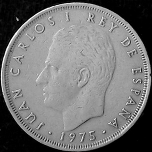 La moneda de 5 pesetas de Juan Carlos I de 1975 contaba con la efigie del Rey y fue creada según la Real Orden de 19 de diciembre de 1975, después del fallecimiento de Francisco Franco.
