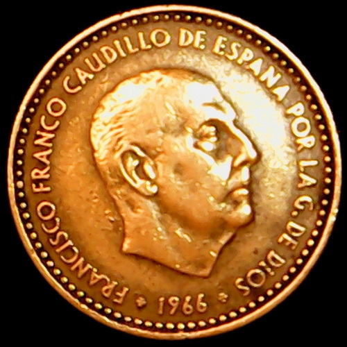 La moneda 1 peseta del 1966 pertenece al catálogo de monedas de España. En la siguiente ficha encontrarás las principales características numismáticas de esta moneda: ceca, año de acuñación, diámetro, tirada, peso, material de fabricación y tipo de canto.