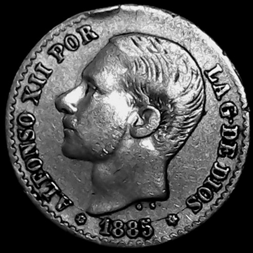 ALFONSO XII. 50 CENT CENTIMOS. 1885 SPAIN, SPANISH. Moneda de plata.