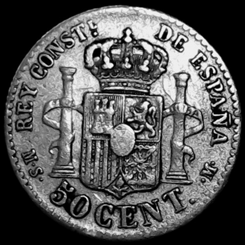 ALFONSO XII. 50 CENT CENTIMOS. 1885 SPAIN, SPANISH.