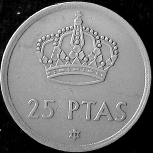 La moneda 25 pesetas del 1975 pertenece al catálogo de monedas de España. En la siguiente ficha encontrarás las principales características numismáticas de esta moneda: ceca, año de acuñación, diámetro, tirada, peso, material de fabricación y tipo de canto.