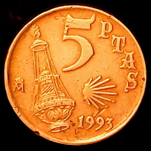 #KM 919. Nombre: 5 pesetas (Jacobeo). Categoría: Peseta. Forma: Redonda.